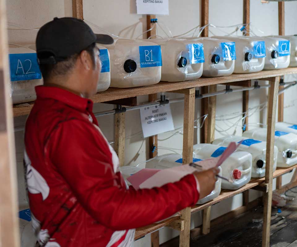 Aquaculture is expanding rapidly along Mendawak’s coastal mangroves, yet high feed costs and pressure on natural fish stocks threaten its sustainability. Sangga Bumi supports innovative aquaculture trials that explore alternative feeds and controlled reproduction to improve efficiency and reduce dependence on wild-caught resources.